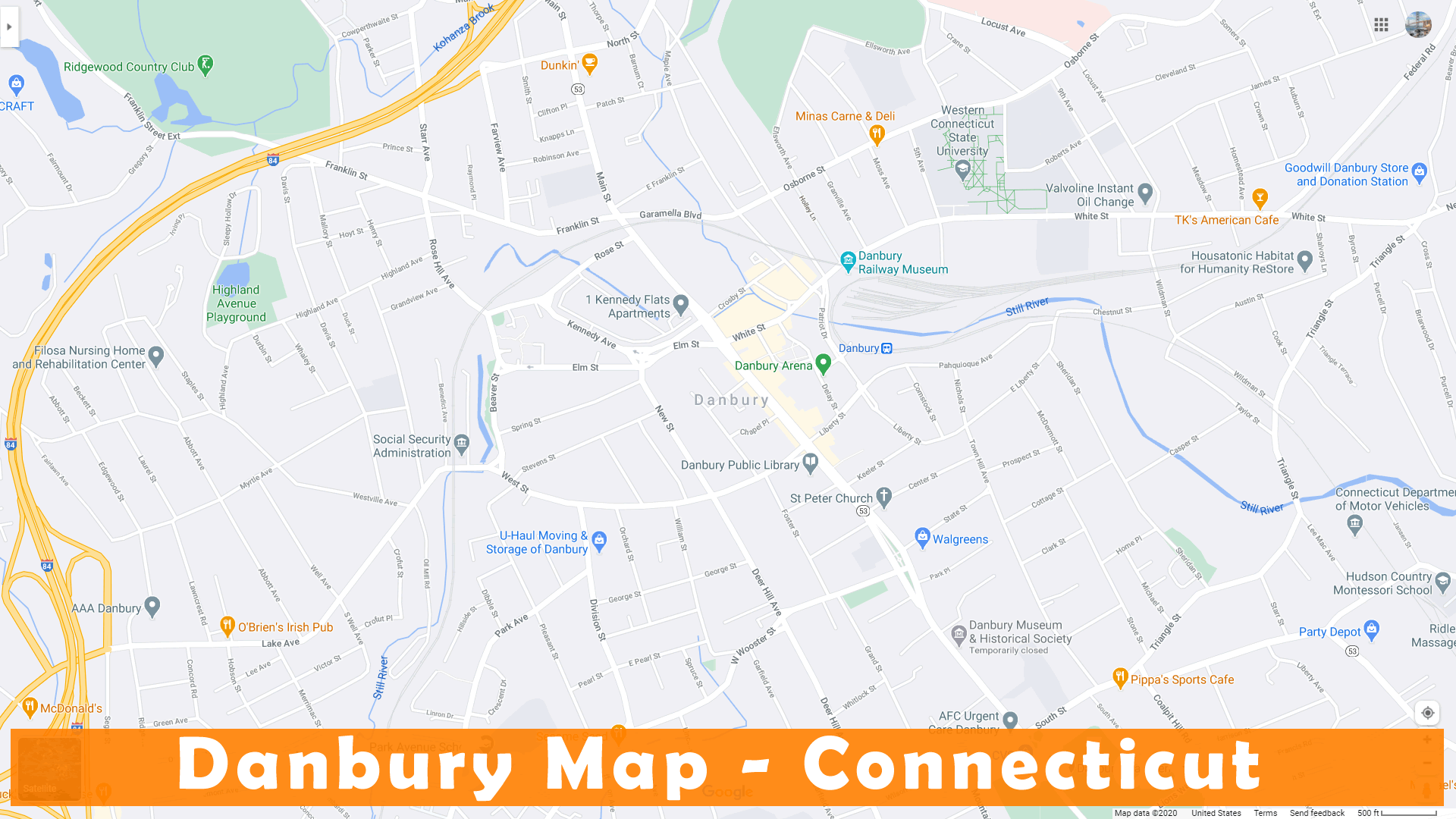 Navigate Danbury, Connecticut Map, map of Danbury, Danbury Connecticut regions map, Danbury satellite image, towns map, road map of Danbury.