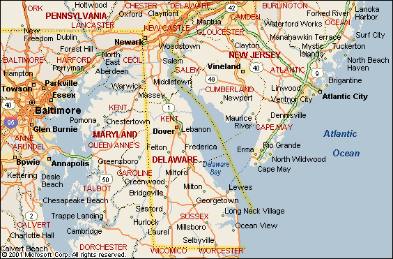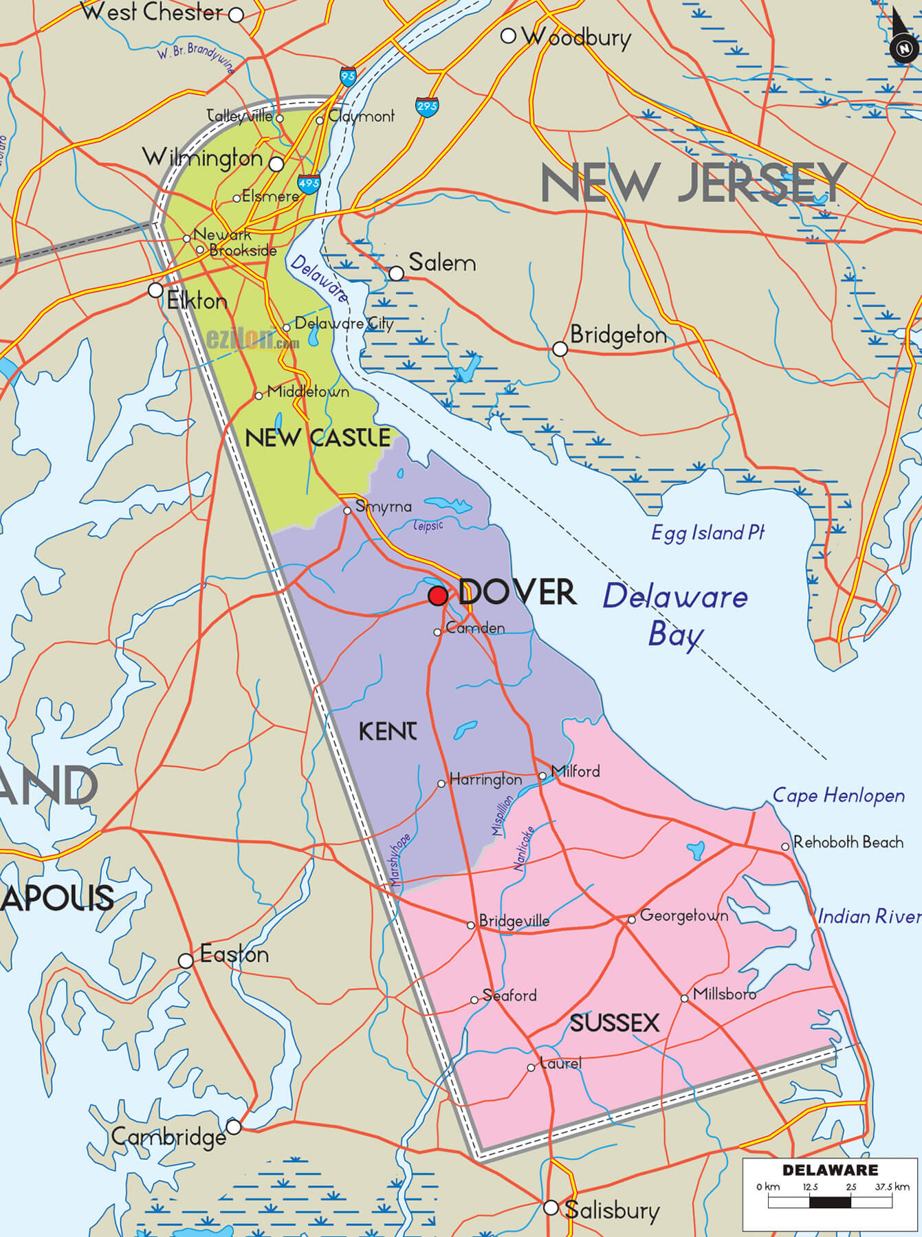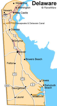 DELAWARE MAP OF THE EAST COAST OF THE USA