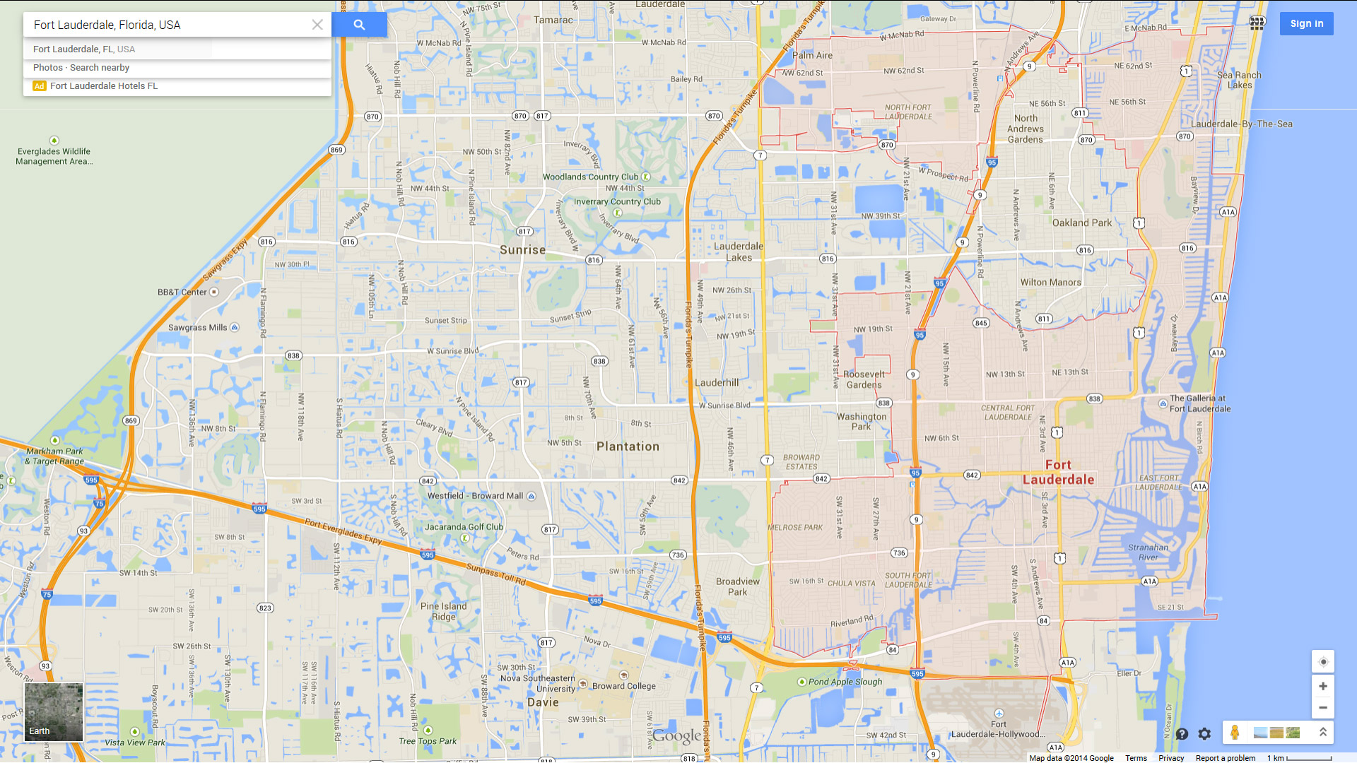 Navigate Fort Lauderdale, Florida Map, map of Fort Lauderdale, Fort Lauderdale Florida regions map, Fort Lauderdale satellite image, towns map, road map of Fort Lauderdale.