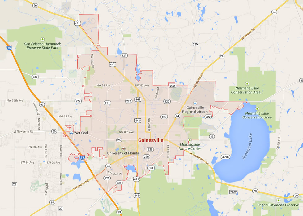Navigate Gainesville, Florida Map, map of Gainesville, Gainesville Florida regions map, Gainesville satellite image, towns map, road map of Gainesville.