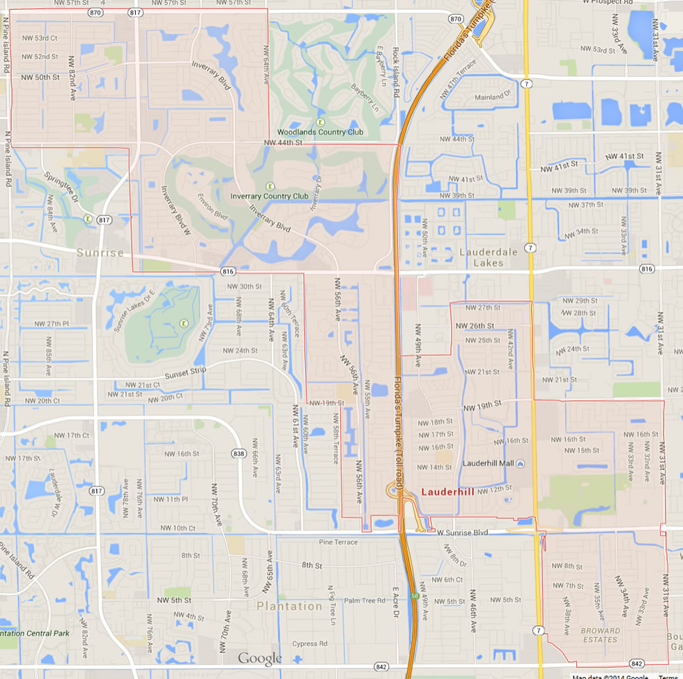 Navigate Lauderhill, Florida Map, map of Lauderhill, Lauderhill Florida regions map, Lauderhill satellite image, towns map, road map of Lauderhill.