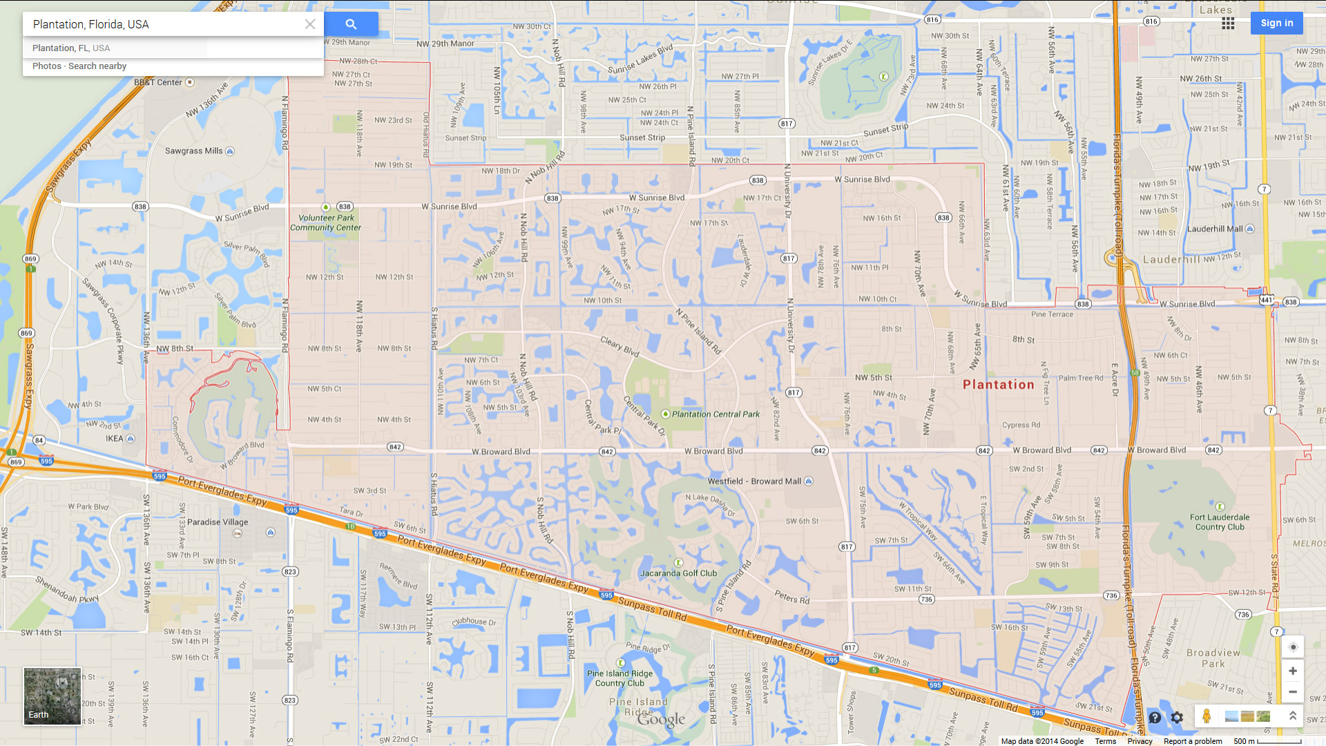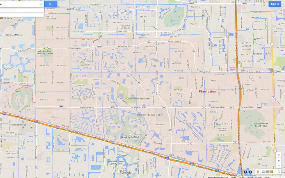 Navigate Plantation, Florida Map, map of Plantation, Plantation Florida regions map, Plantation satellite image, towns map, road map of Plantation.