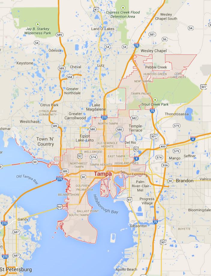 Navigate Tampa, Florida Map, map of Tampa, Tampa Florida regions map, Tampa satellite image, towns map, road map of Tampa.