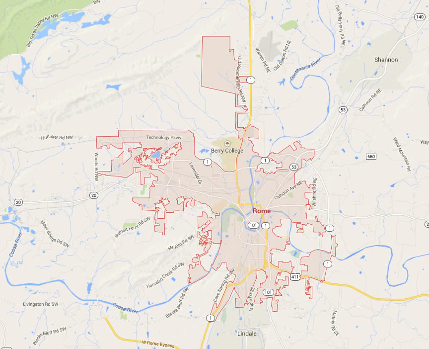 Navigate Rome, Georgia Map, map of Rome, Rome Georgia regions map, Rome satellite image, towns map, road map of Rome.