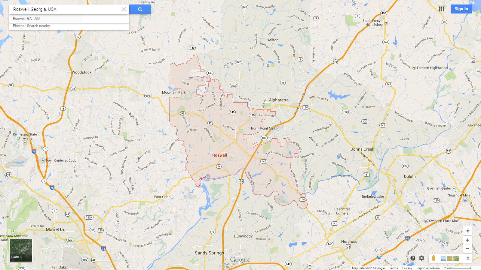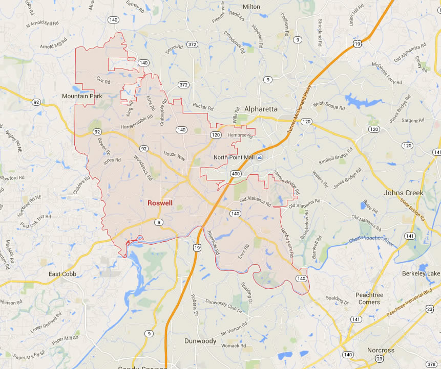 Navigate Roswell, Georgia Map, map of Roswell, Roswell Georgia regions map, Roswell satellite image, towns map, road map of Roswell.