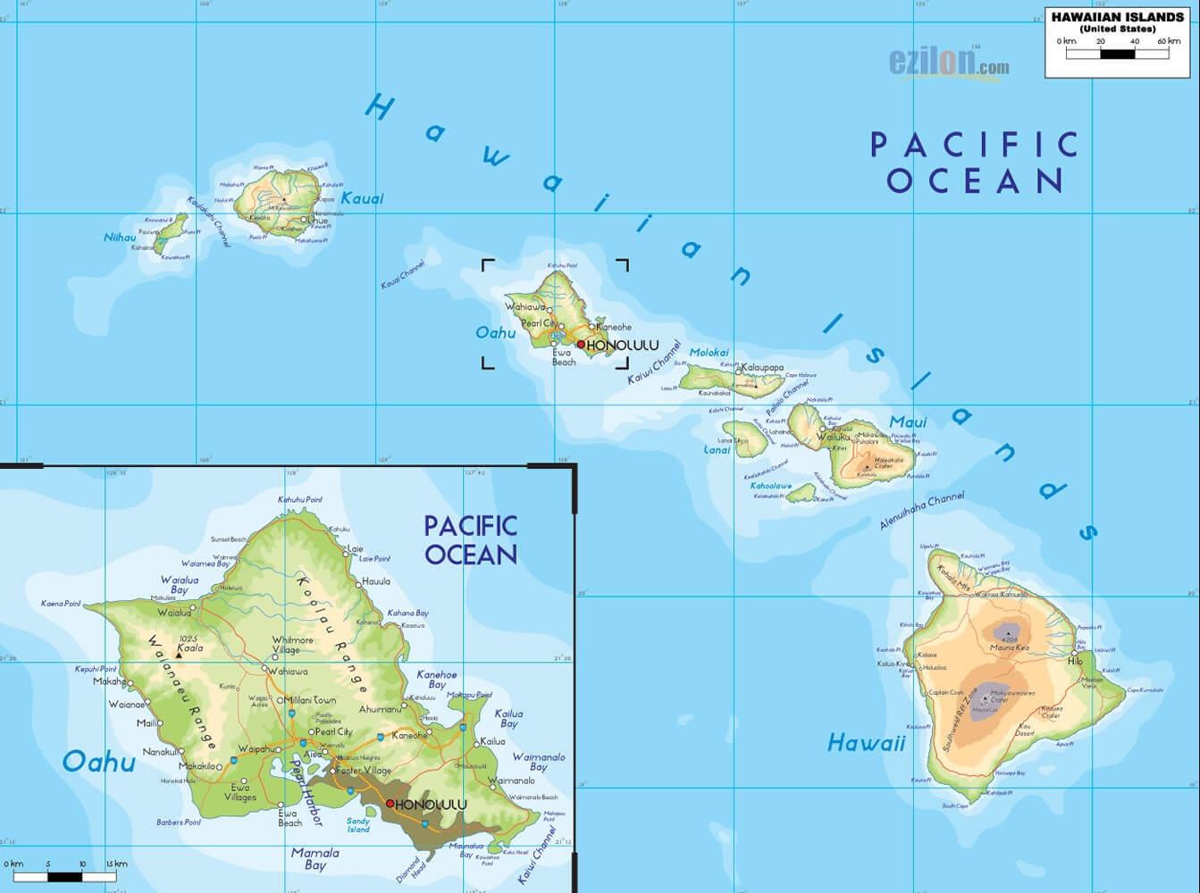 HAWAII ISLANDS MAP PASIFIC OCEAN