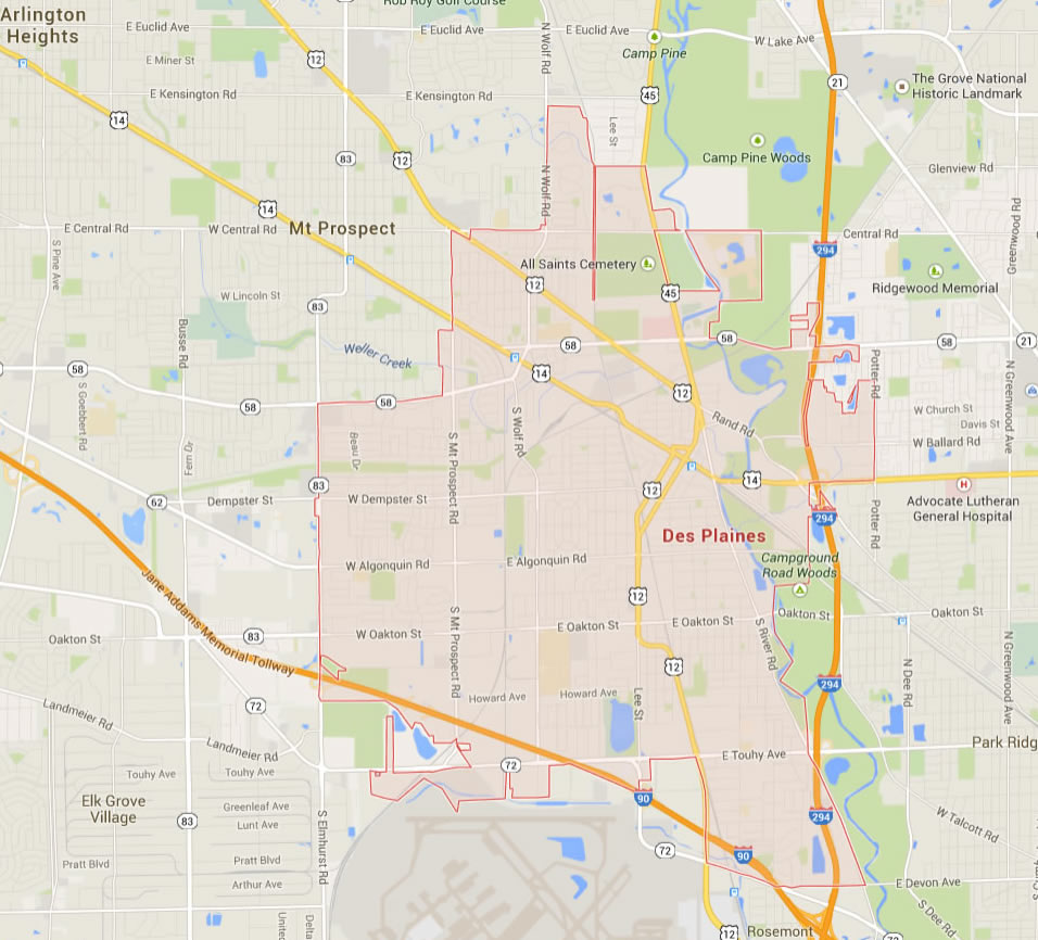 Navigate Des Plaines, Illinois Map, map of Des Plaines, Des Plaines illinois regions map, Des Plaines satellite image, towns map, road map of Des Plaines.