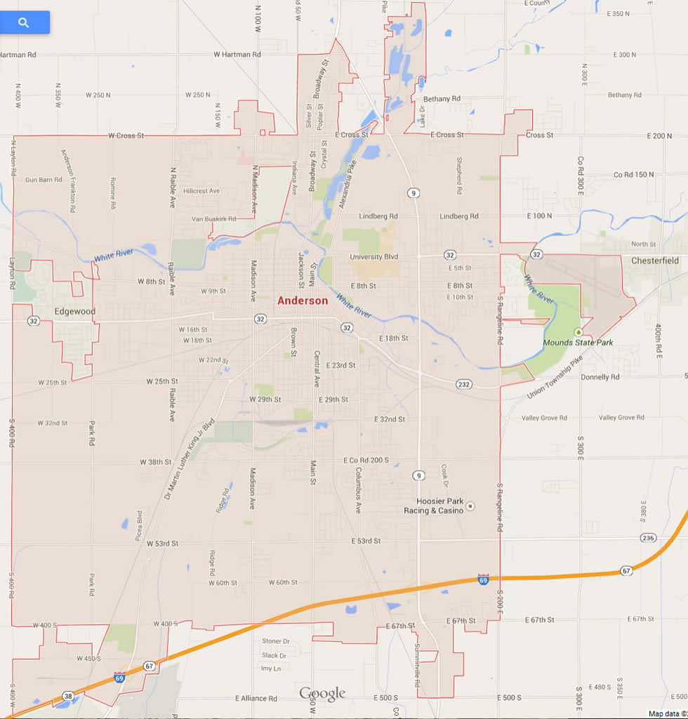 Navigate Anderson, Indiana Map, map of Anderson, Anderson Indiana regions map, Anderson satellite image, towns map, road map of Anderson.