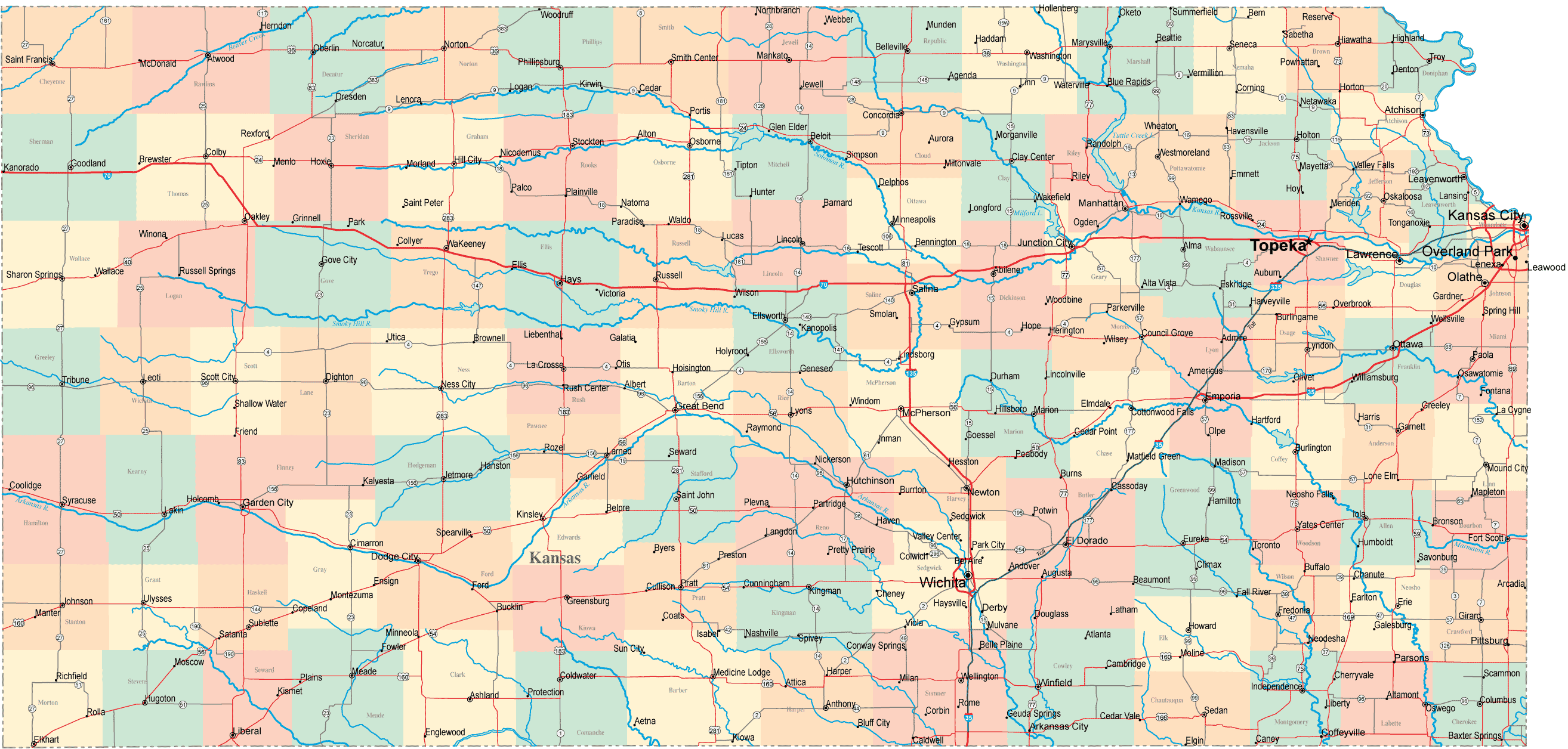 Kansas, also known as the Sunflower State, is located in the heart of the United States and is known for its vast prairies, scenic Flint Hills, and rich history. Our detailed map of Kansas is designed to help you explore and navigate this fascinating state, whether you are a resident, a visitor, or simply interested in learning more about Kansas.