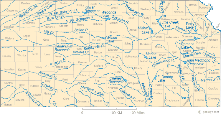 Kansas is a state located in the Midwestern region of the United States. It is bordered by Nebraska to the north, Missouri to the east, Oklahoma to the south, and Colorado to the west. With an area of approximately 82,000 square miles (213,000 square kilometers), Kansas is the 15th largest state in the US. The state's capital is Topeka, and its largest city is Wichita.