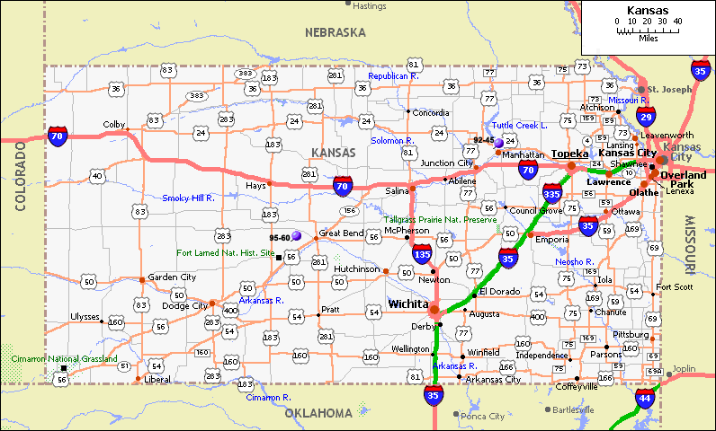On this page, you'll find a comprehensive map that highlights the state's major cities, highways, and topographic features. You'll also discover useful information about popular tourist destinations and landmarks, including Wichita, Topeka, and the Kansas City metropolitan area. Whether you're planning a road trip, looking for new places to visit, or simply want to learn more about Kansas, WorldMap1's Kansas map has got you covered. So, let's get started and discover all the wonders that this great state has to offer!
