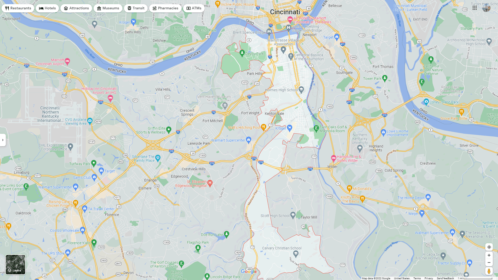 Navigate Covington, Kentucky Map, map of Covington, Covington Kentucky regions map, Covington satellite image, towns map, road map of Covington.
