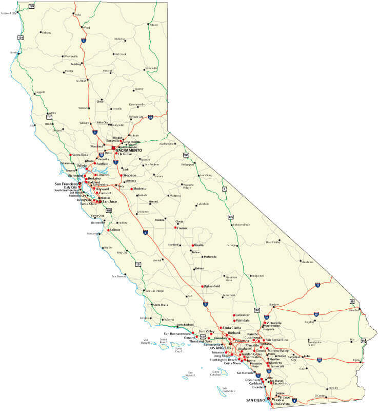 Navigate California map, satellite images of the CaliforniaUnited States, US states, largest cities, political map of California USA, capitals and physical maps.