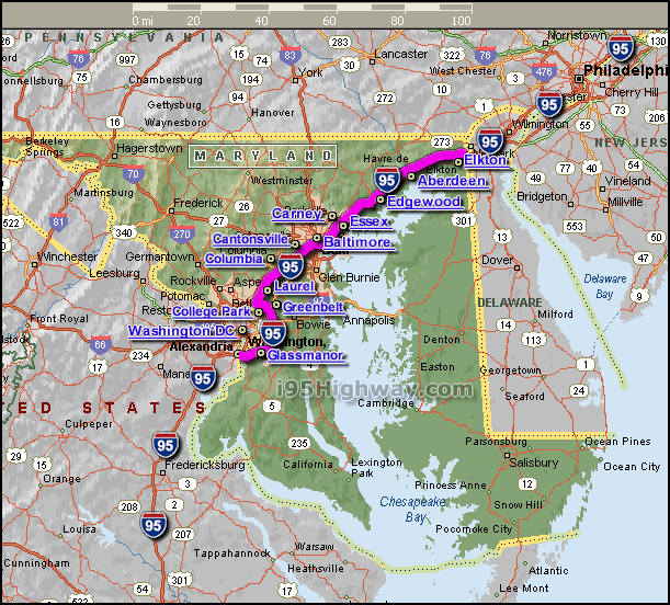 MARYLAND MAP INTERSTATE 95