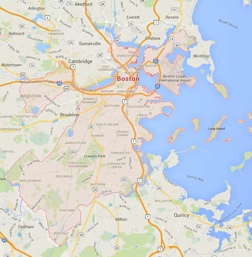 Navigate Boston, Massachusetts Map, map of Boston, Boston regions map, Boston satellite image, towns map, road map of Boston.
