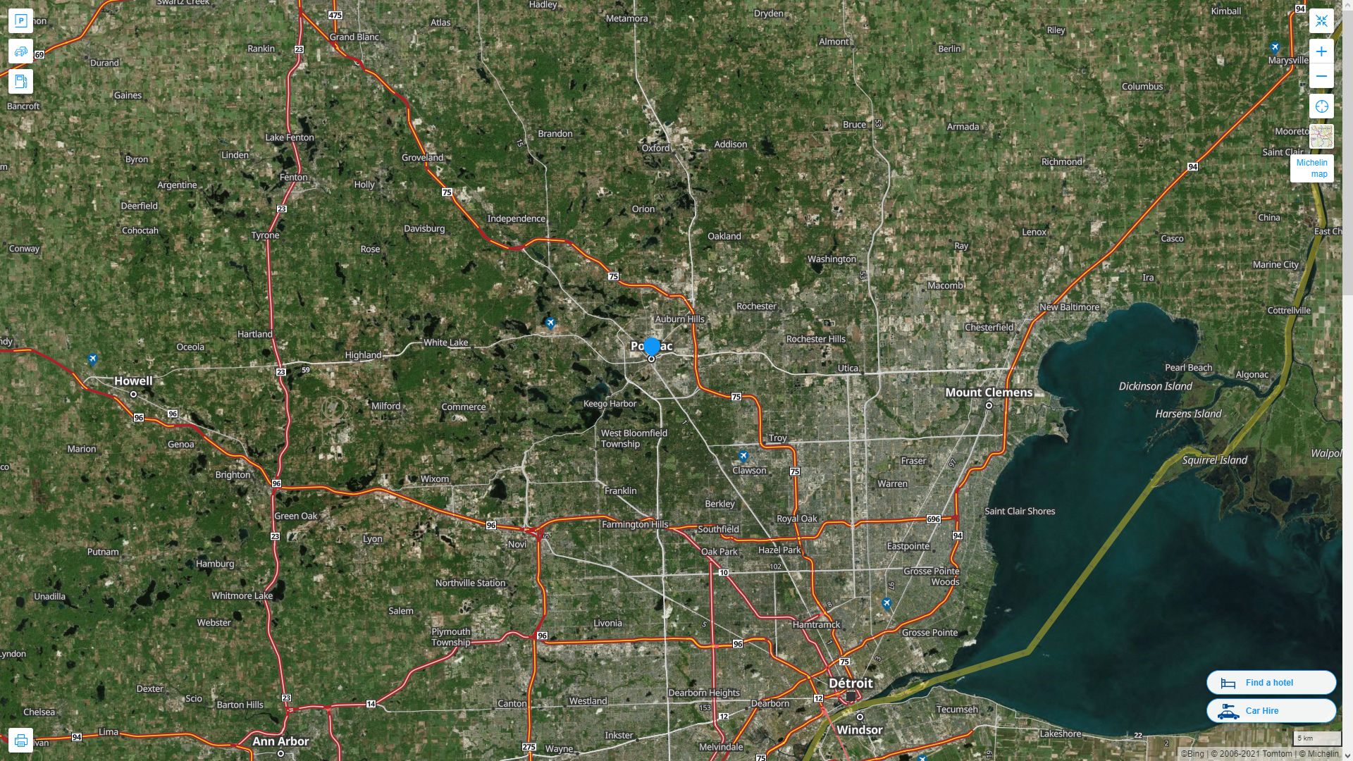 Navigate Pontiac, Michigan Map, map of Pontiac, Pontiac Michigan regions map, Pontiac satellite image, towns map, road map of Pontiac.