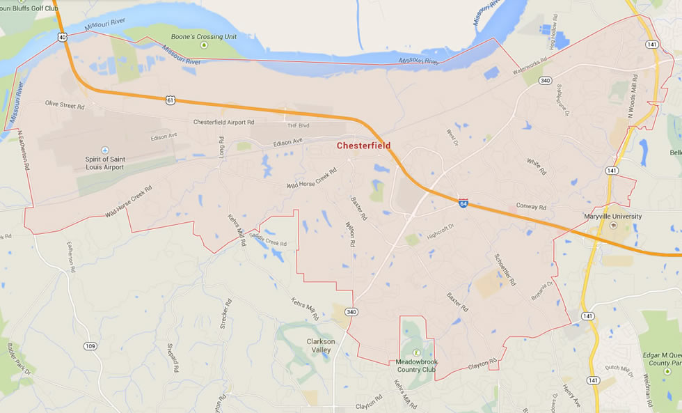 Navigate Chesterfield, Missouri Map, map of Chesterfield, Chesterfield Missouri regions map, Chesterfield satellite image, towns map, road map of Chesterfield.
