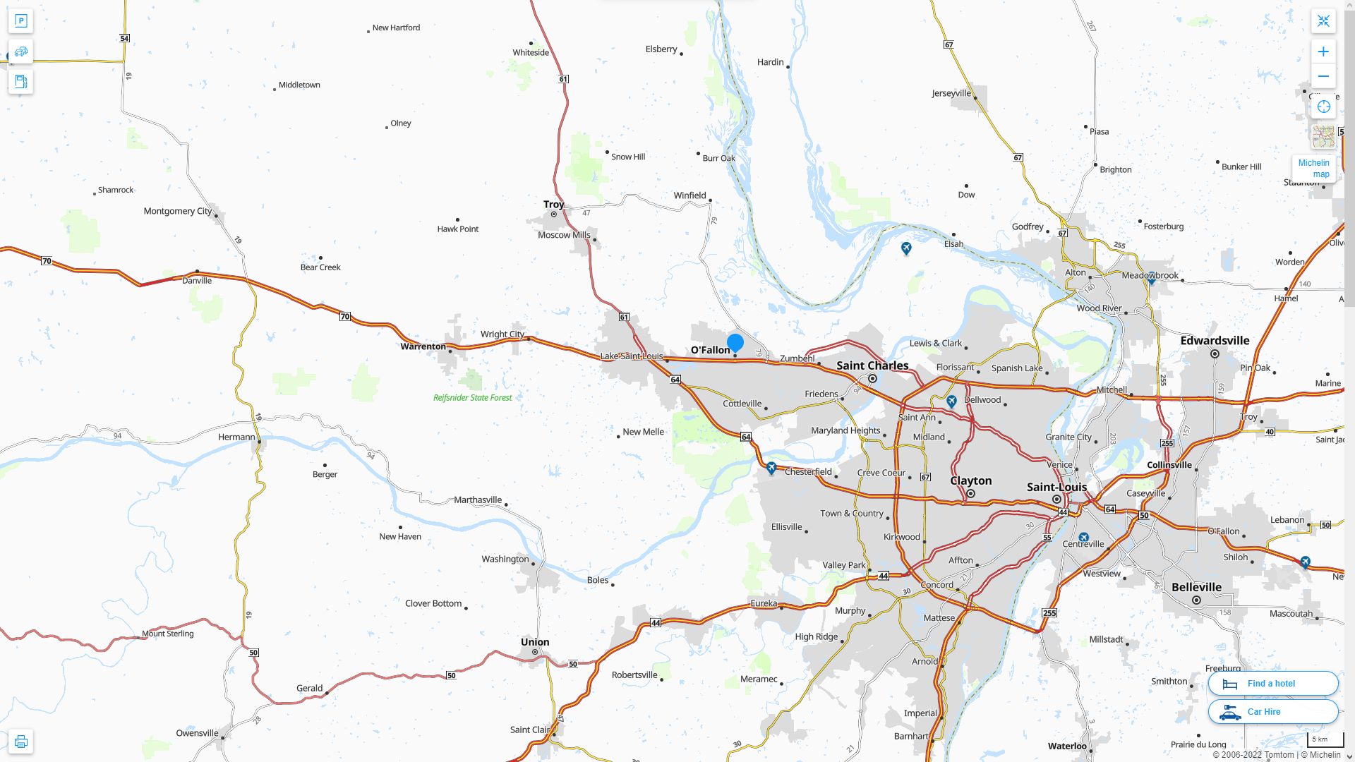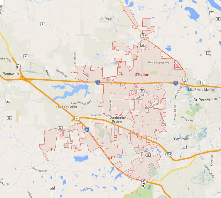Navigate O'Fallon, Missouri Map, map of O'Fallon, O'Fallon Missouri regions map, O'Fallon satellite image, towns map, road map of O'Fallon.