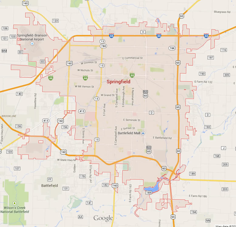 Navigate Springfield, Missouri Map, map of Springfield, Springfield Missouri regions map, Springfield satellite image, towns map, road map of Springfield.