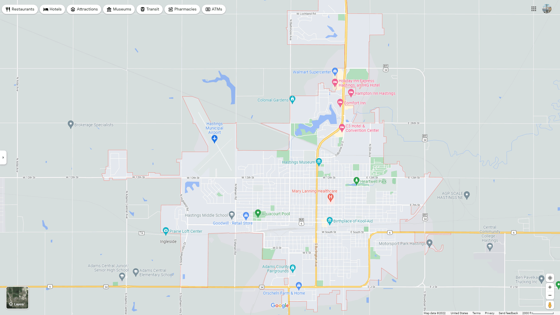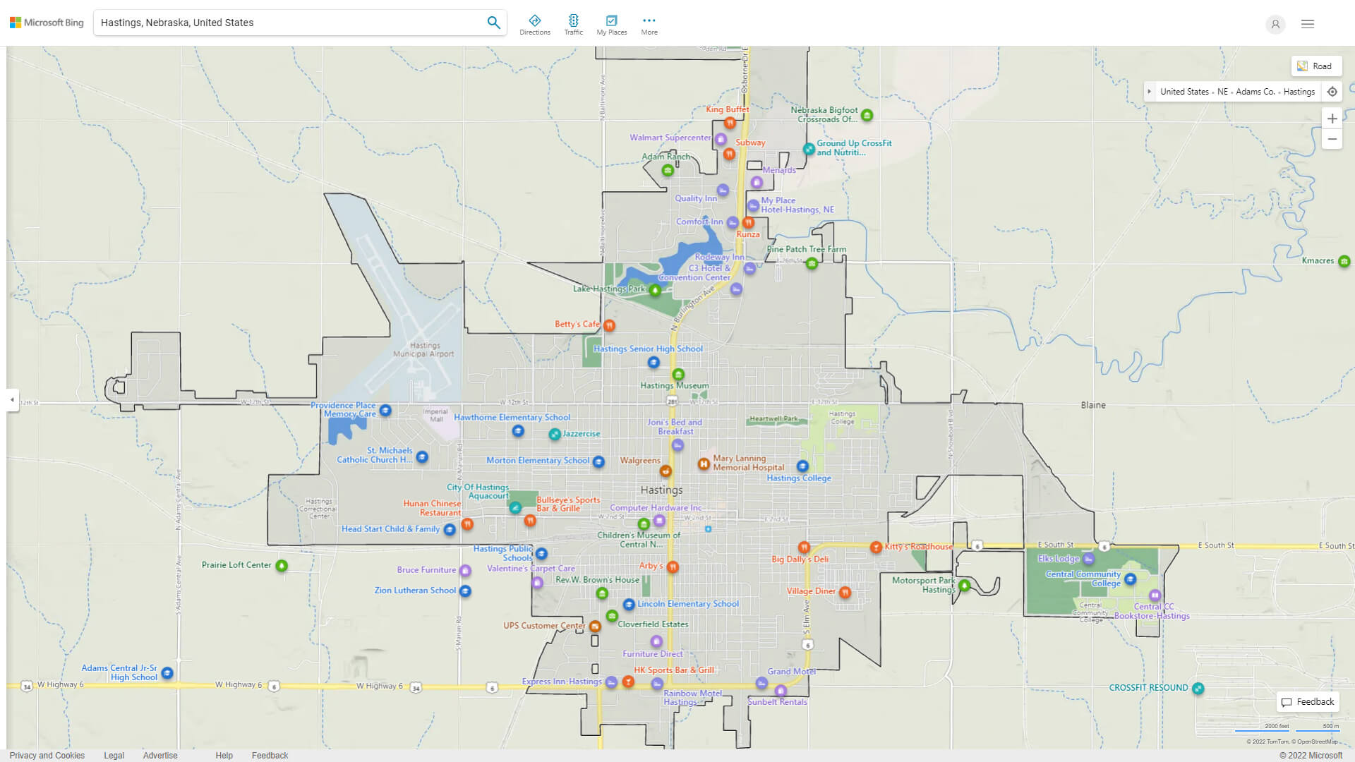 Navigate Hastings, Nebraska Map, map of Hastings, Hastings Nebraska regions map, Hastings satellite image, towns map, road map of Hastings.