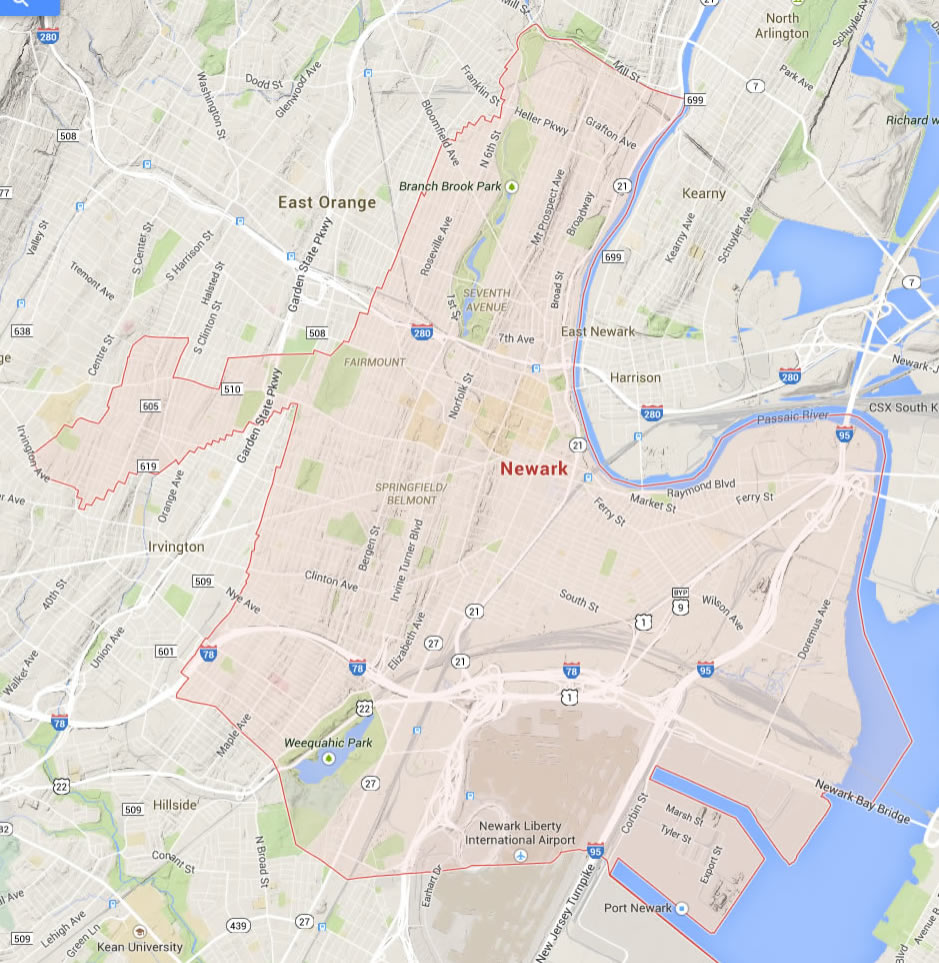 Navigate Newark, New Jersey Map, map of Newark, Newark New Jersey regions map, Newark satellite image, towns map, road map of Newark.