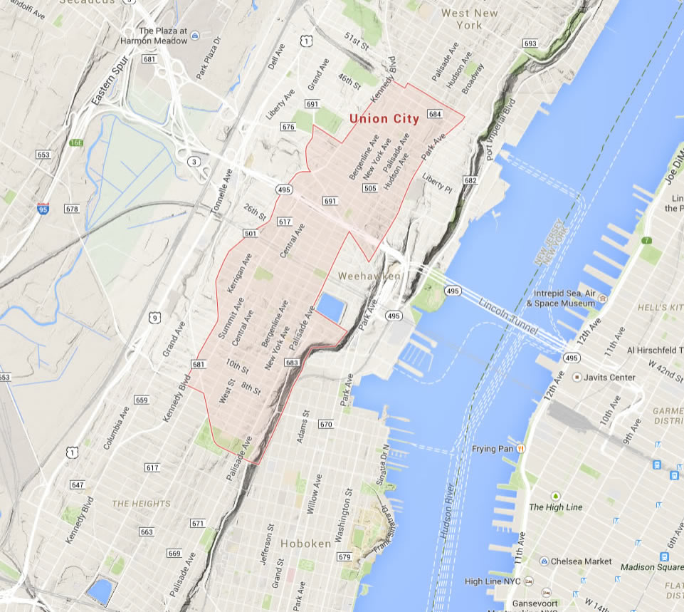 Navigate Union City, New Jersey Map, map of Union City, Union City New Jersey regions map, Union City satellite image, towns map, road map of Union City.