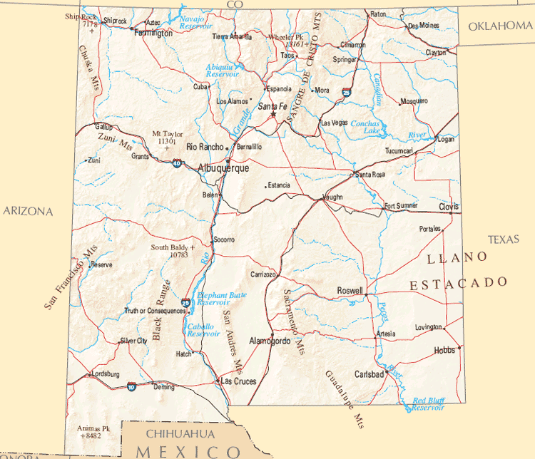 NEW MEXICO PHYSICAL MAP