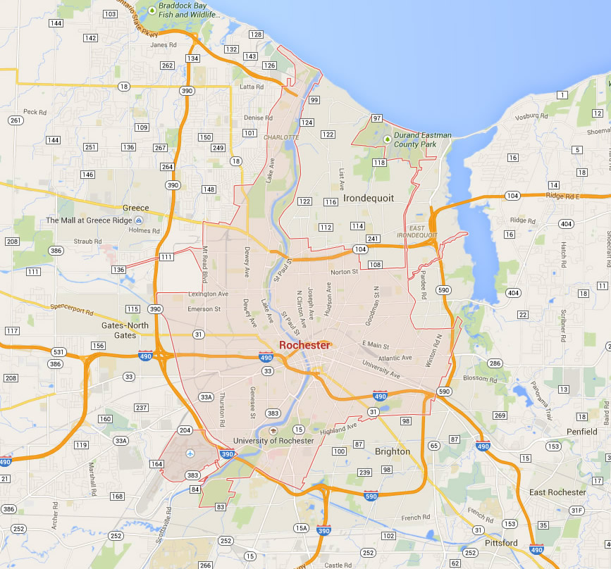 Navigate Rochester, New York Map, map of Rochester, Rochester New York regions map, Rochester satellite image, towns map, road map of Rochester.