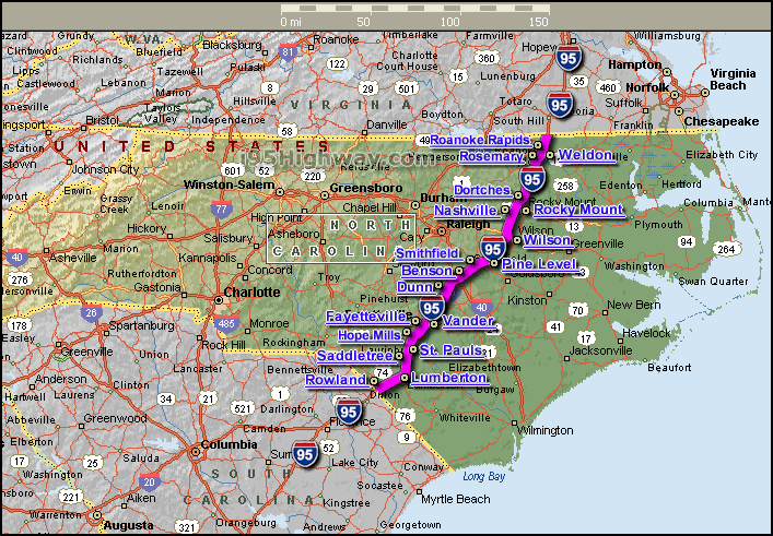 INTERSTATE 95 NORTH CAROLINA MAP