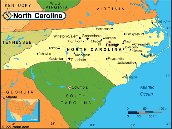 NORTH CAROLINA USA MAP