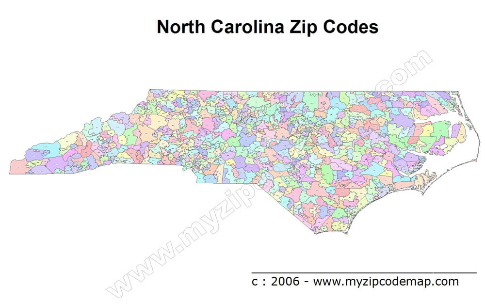 NORTH CAROLINA ZIP CODE MAP