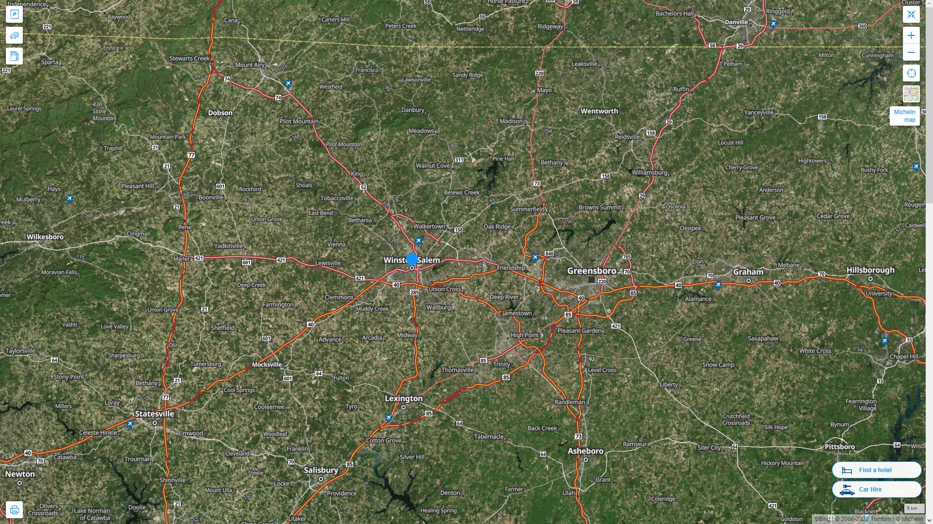 Navigate Winston Salem, North Carolina Map, map of Winston Salem, Winston Salem North Carolina regions map, Winston Salem satellite image, towns map, road map of Winston Salem.