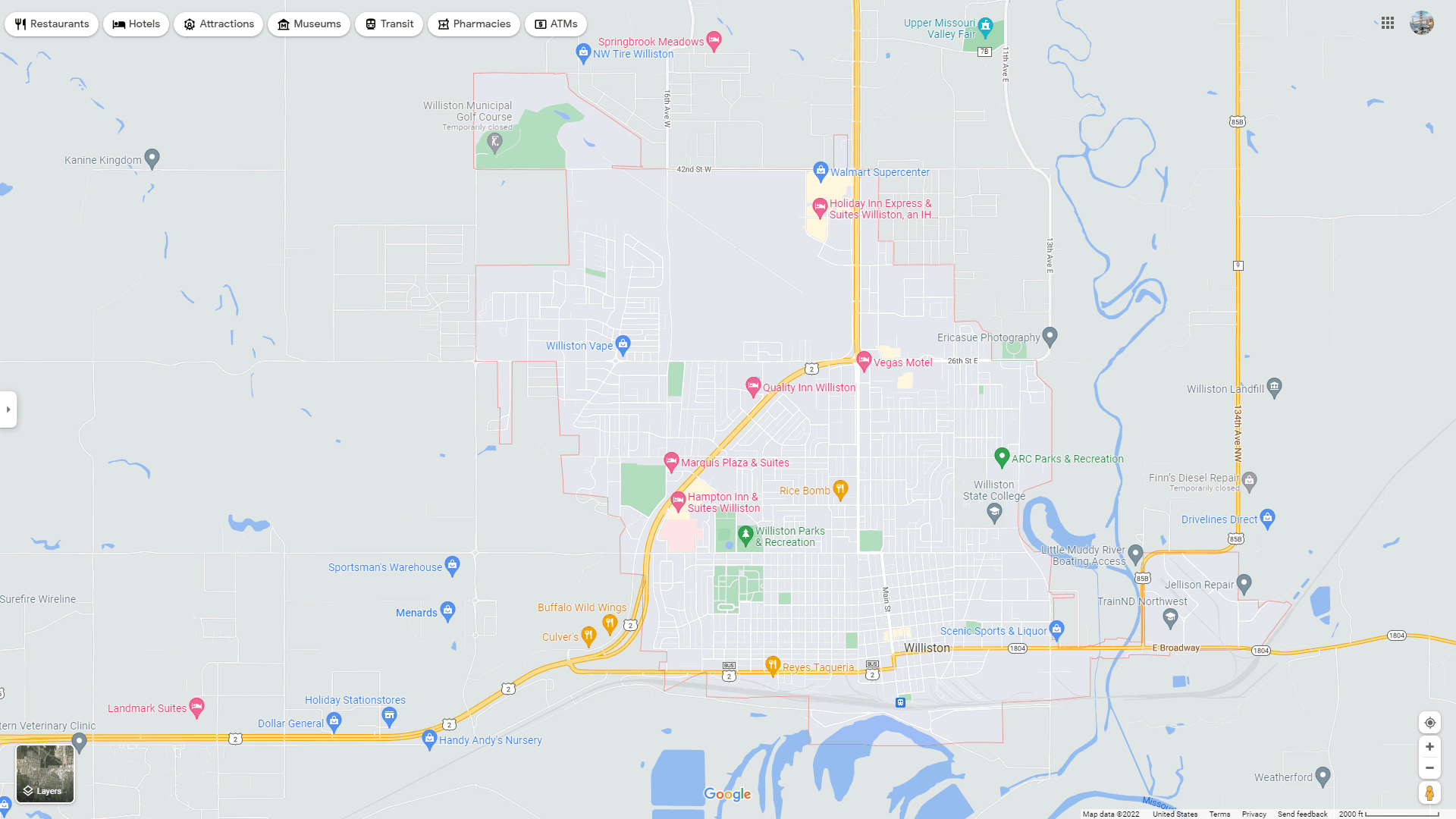 Navigate Williston, North Dakota Map, map of Williston, Williston North Dakota regions map, Williston satellite image, towns map, road map of Williston.