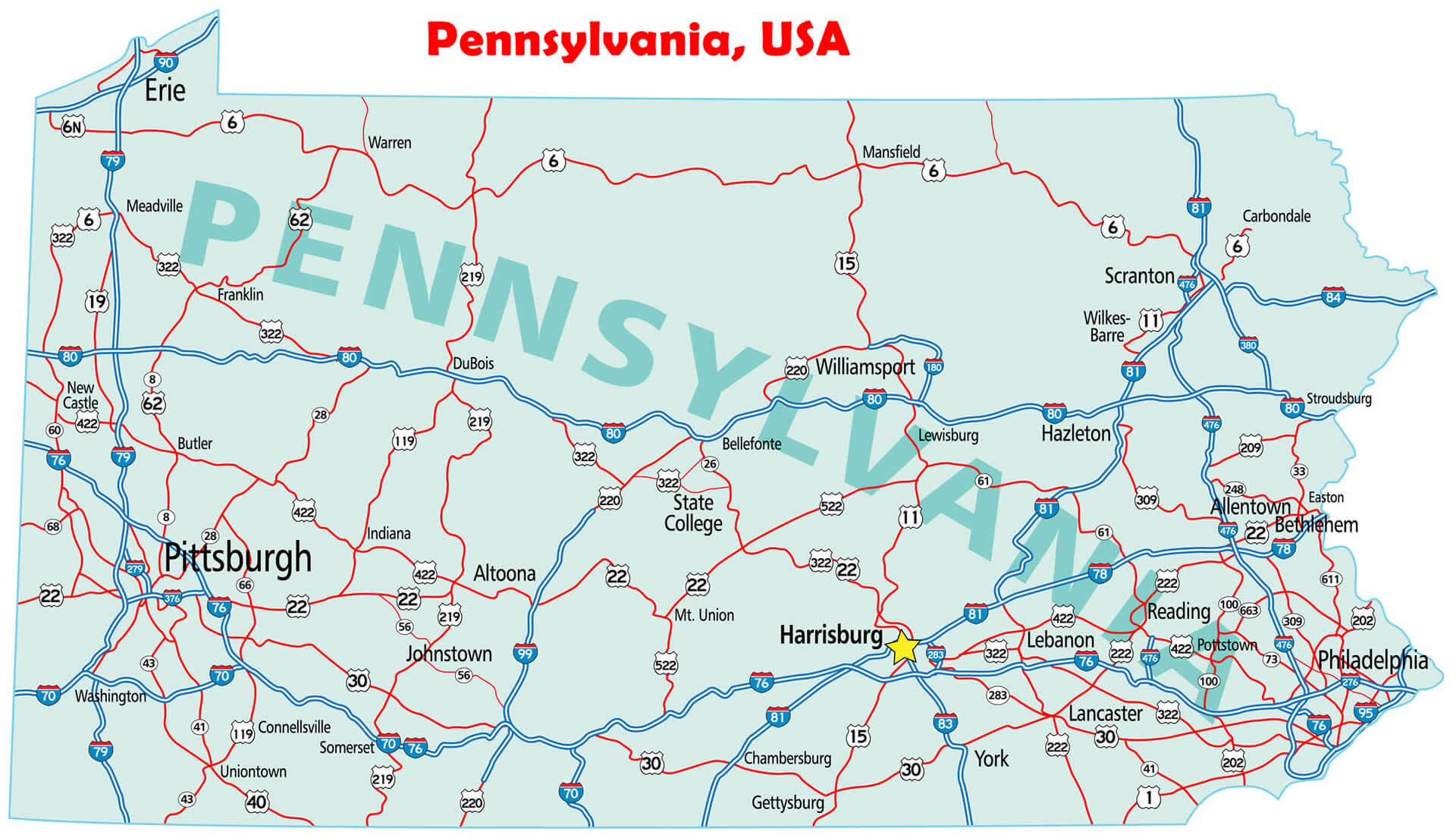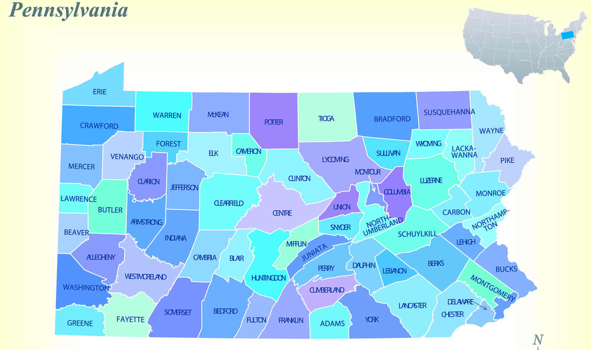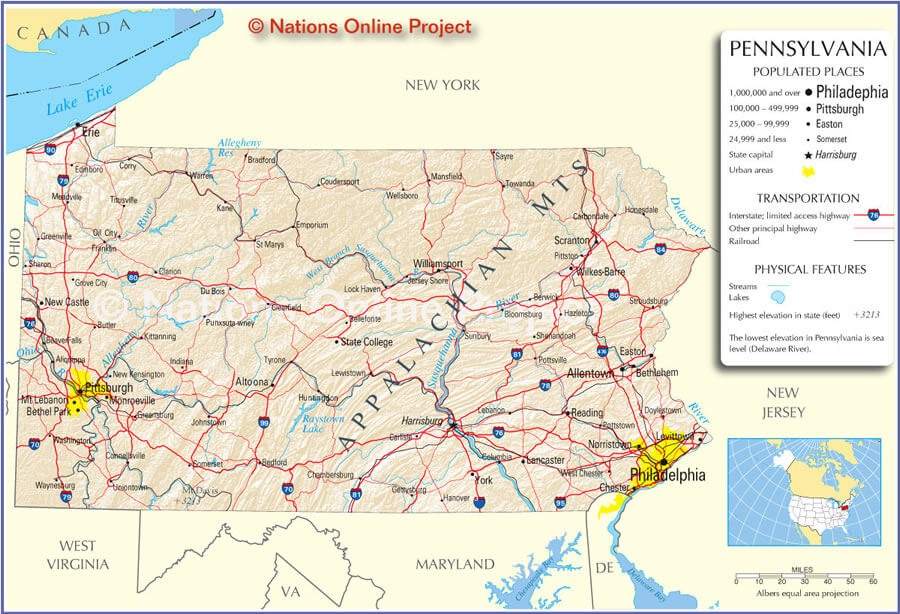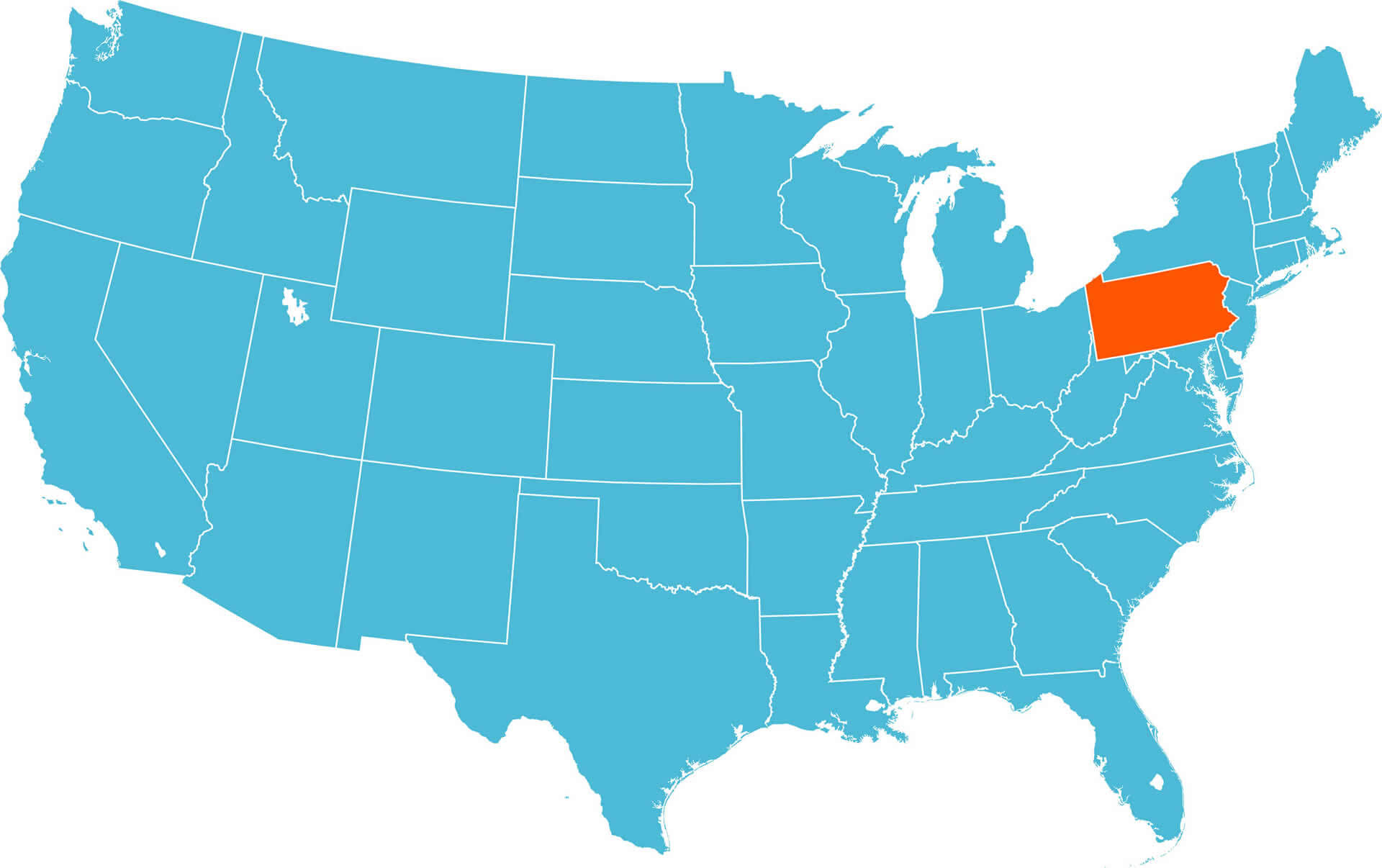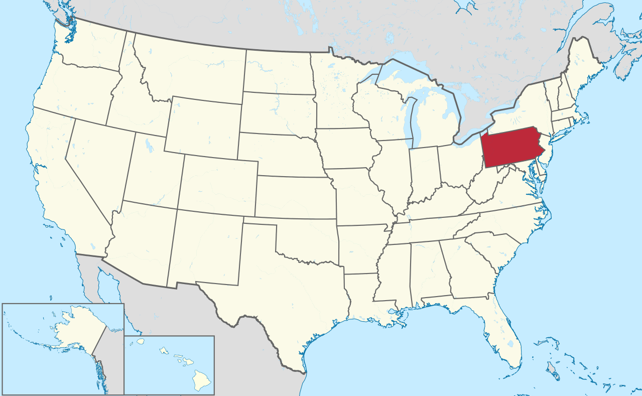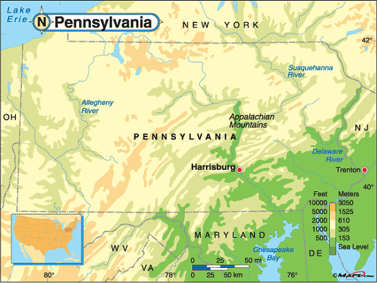 Pennsylvania is located in the northeastern region of the United States. Philadelphia is the state capital of Pennsylvania and its largest city. This state is located between New York, New Jersey, Maryland and West Virginia.