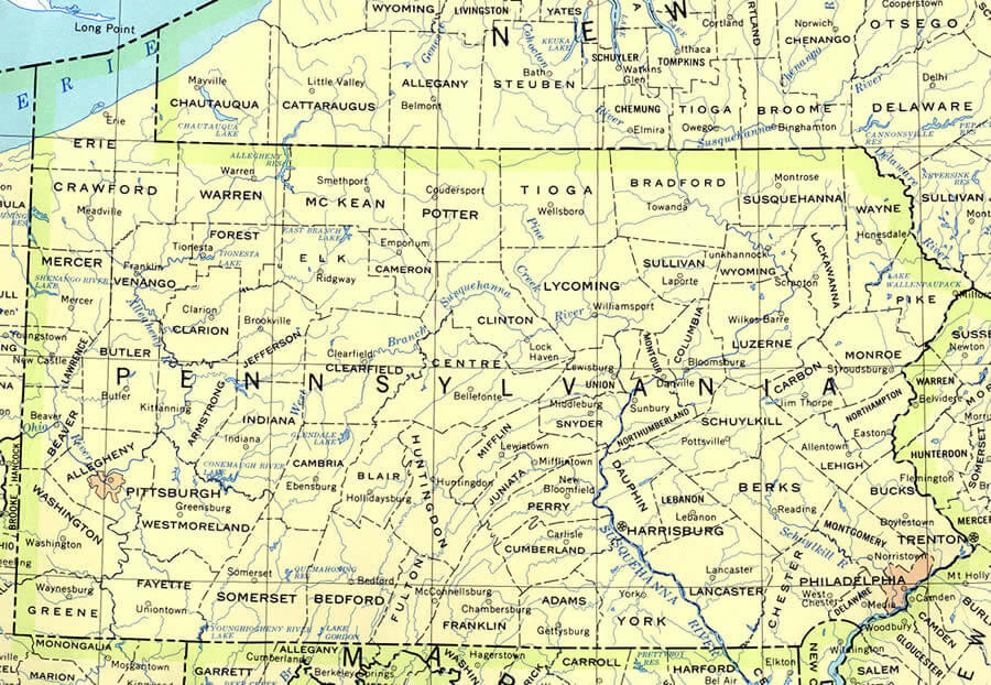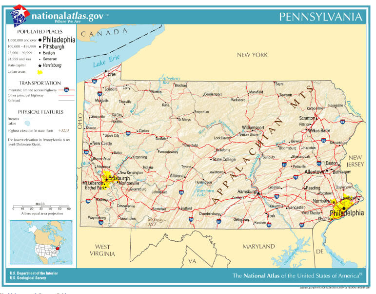 Discover the diverse geography of Pennsylvania through our interactive map. Navigate through the state's cities, counties, and notable landmarks with ease. Our detailed Pennsylvania map is perfect for planning trips, studying geography, or simply exploring the Keystone State from the comfort of your home. Start exploring now!