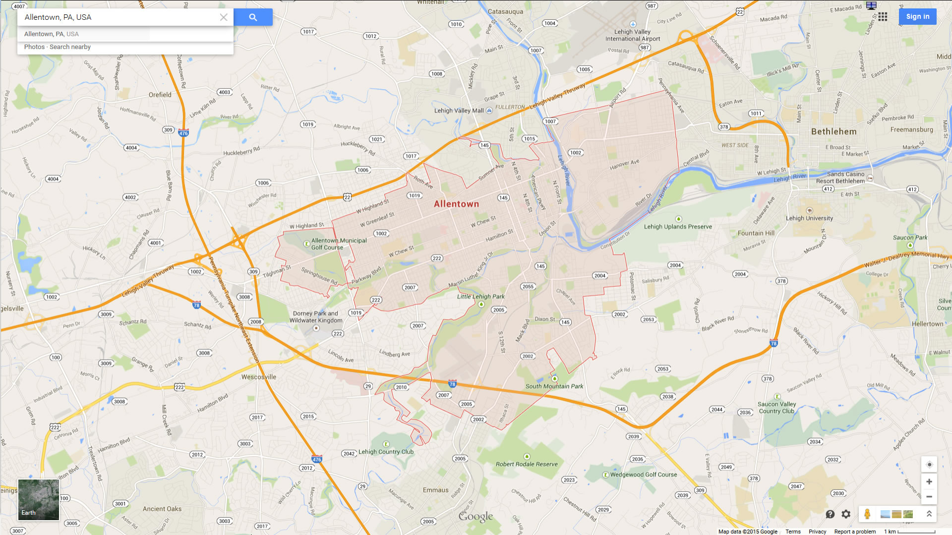 Allentown Pennsylvania Google Map, Street Views, Maps Directions, Satellite Images