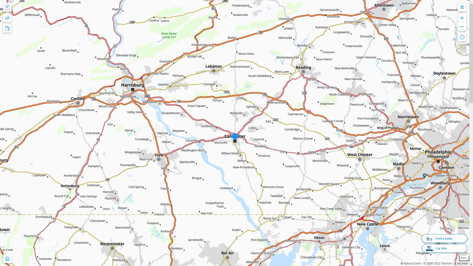 Navigate Lancaster, Pennsylvania Map, map of Lancaster, Lancaster Pennsylvania regions map, Lancaster satellite image, towns map, road map of Lancaster.