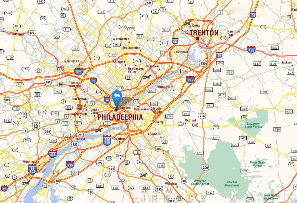 Navigate Philadelphia, Pennsylvania Map, map of Philadelphia, Philadelphia Pennsylvania regions map, Philadelphia satellite image, towns map, road map of Philadelphia.