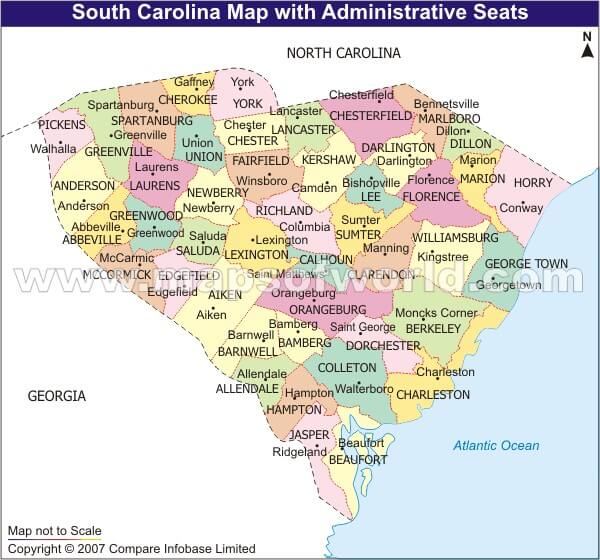 SOUTH CAROLINA COUNTY SEAT MAP