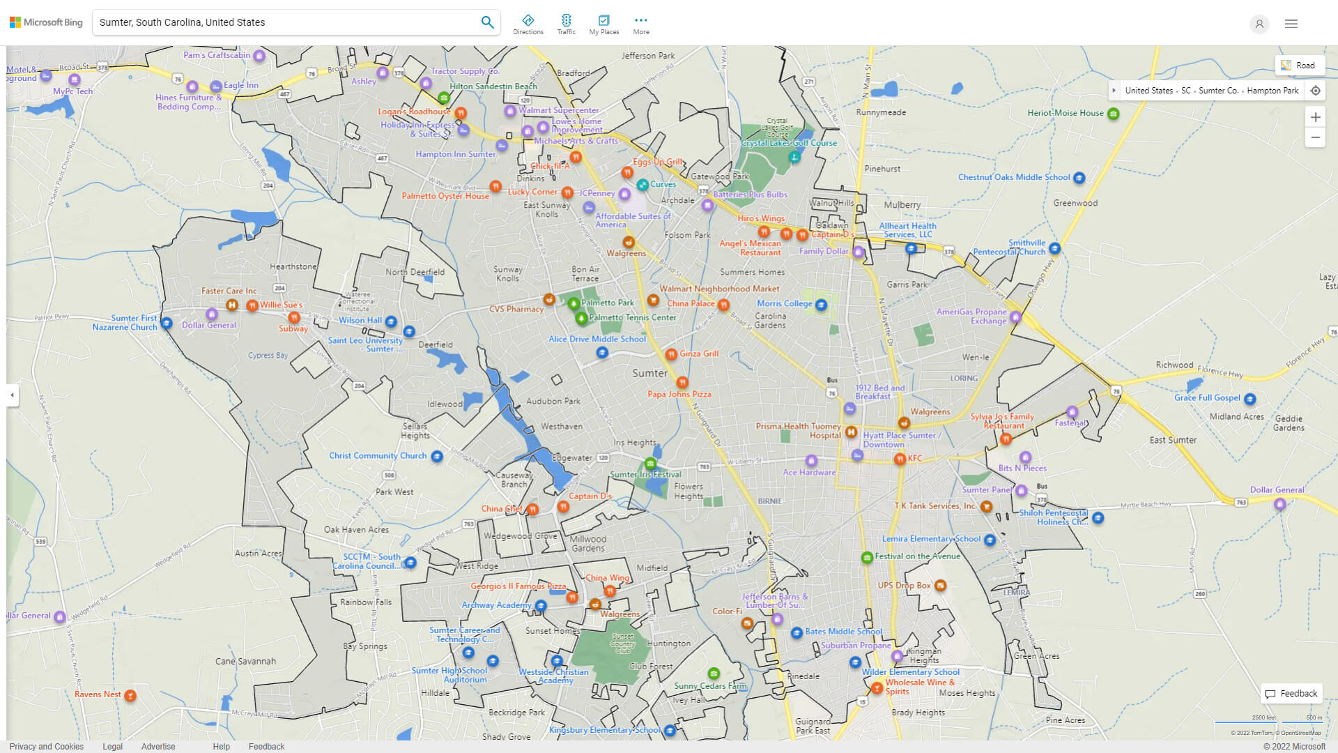 Navigate Sumter, South Carolina Map, map of Sumter, Sumter South Carolina regions map, Sumter satellite image, towns map, road map of Sumter.