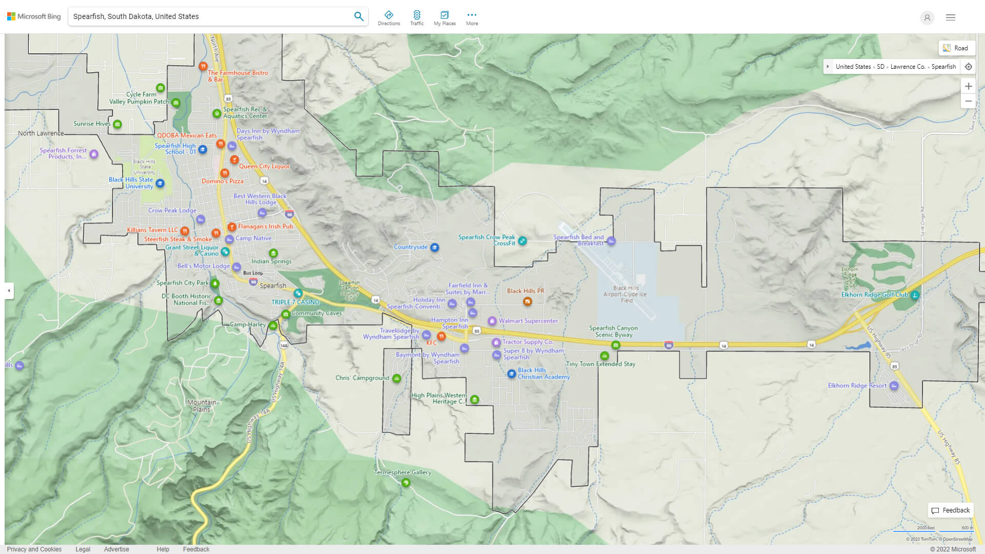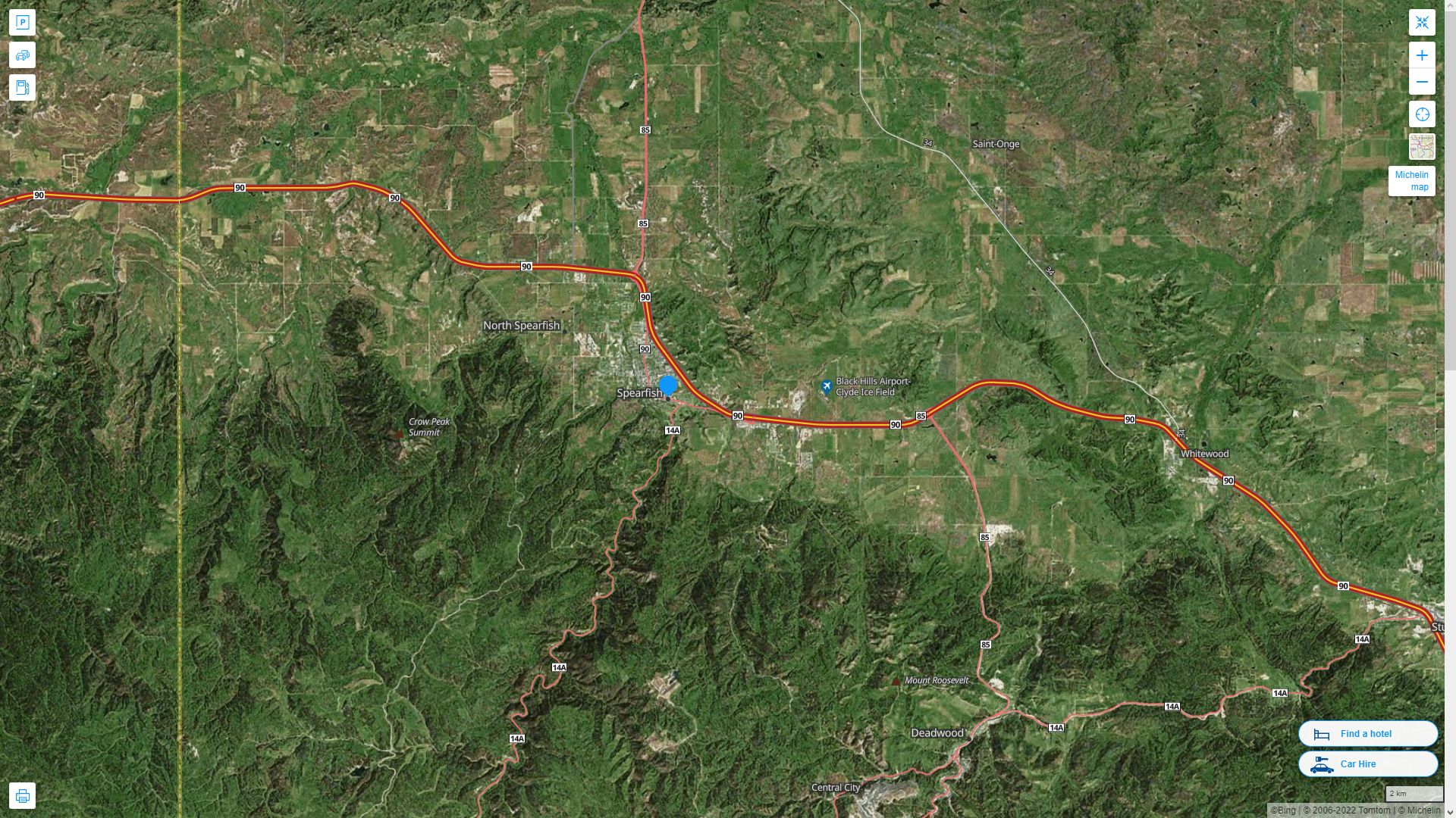 Navigate Spearfish, South Dakota Map, map of Spearfish, Spearfish South Dakota regions map, Spearfish satellite image, towns map, road map of Spearfish.