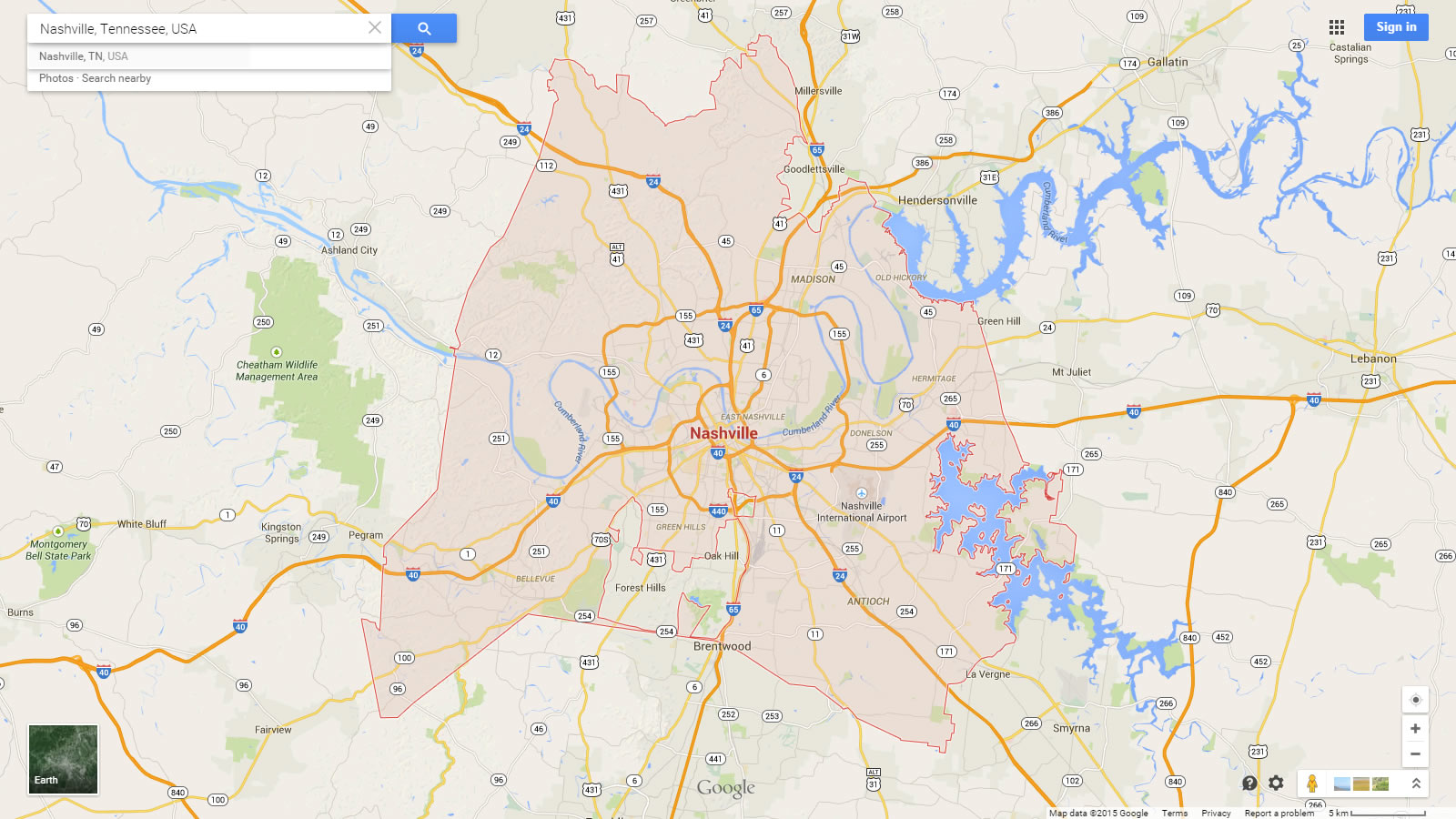 Map of Nashville