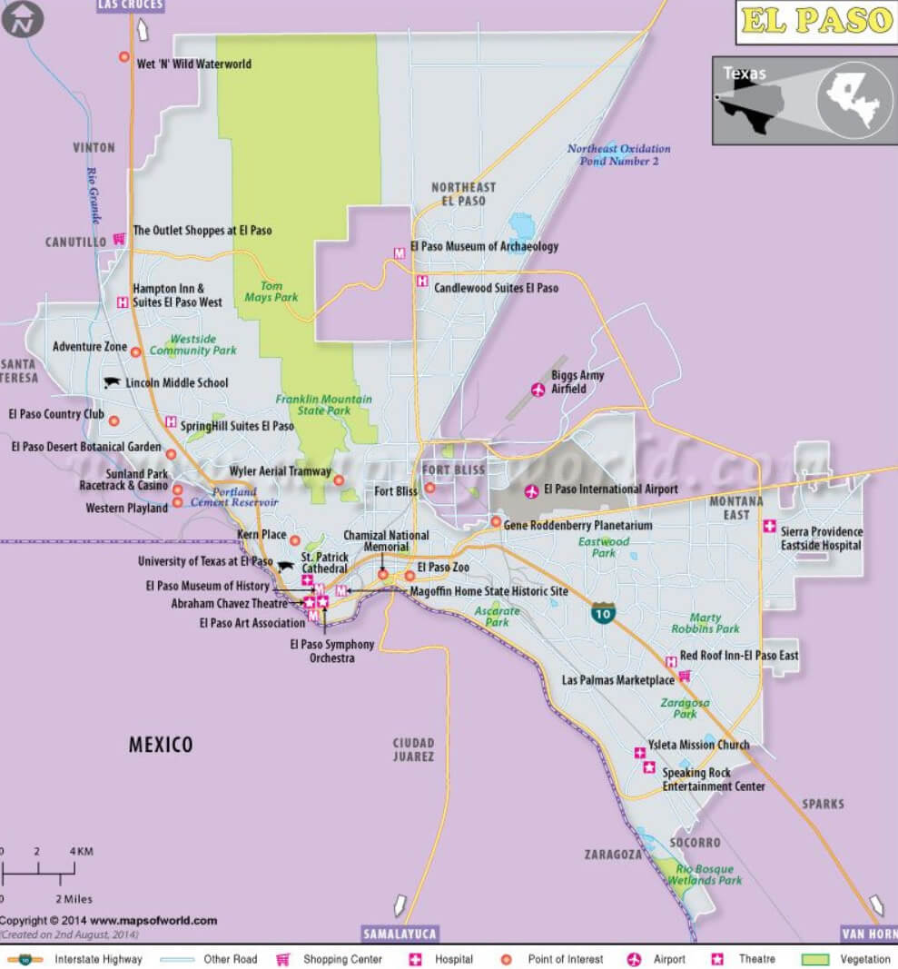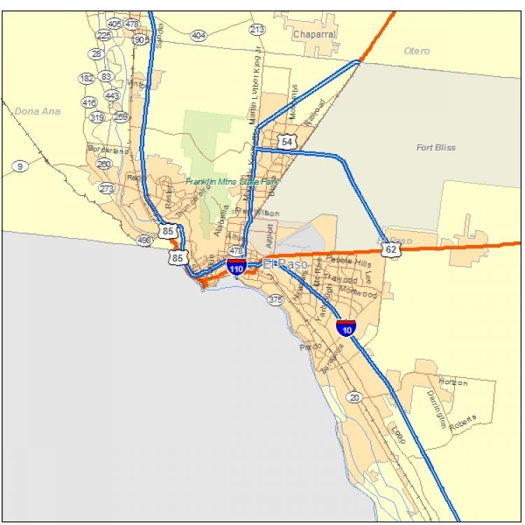 Navigate El Paso, Texas Map, map of El Paso, El Paso Texas regions map, El Paso satellite image, towns map, road map of El Paso.
