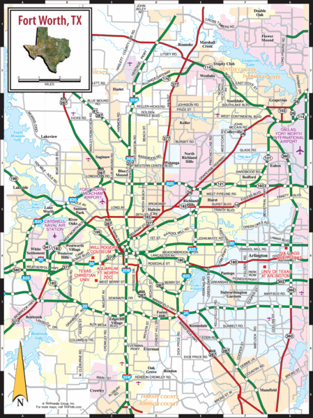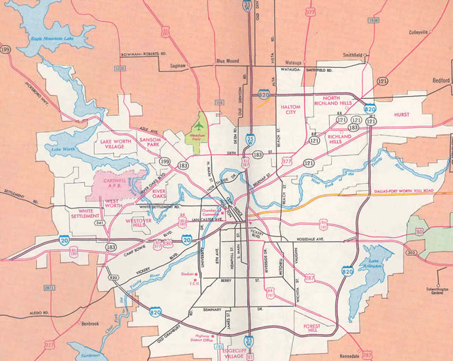 FORT WORTH TEXAS HIGHWAY AND ROAD MAP