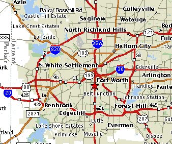 FORT WORTH TEXAS HIGHWAY AND ROAD MAP WITH SATELLITE VIEW