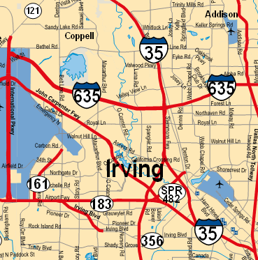 Navigate Irving, Texas Map, map of Irving, irving Texas regions map, Irving satellite image, towns map, road map of Irving.