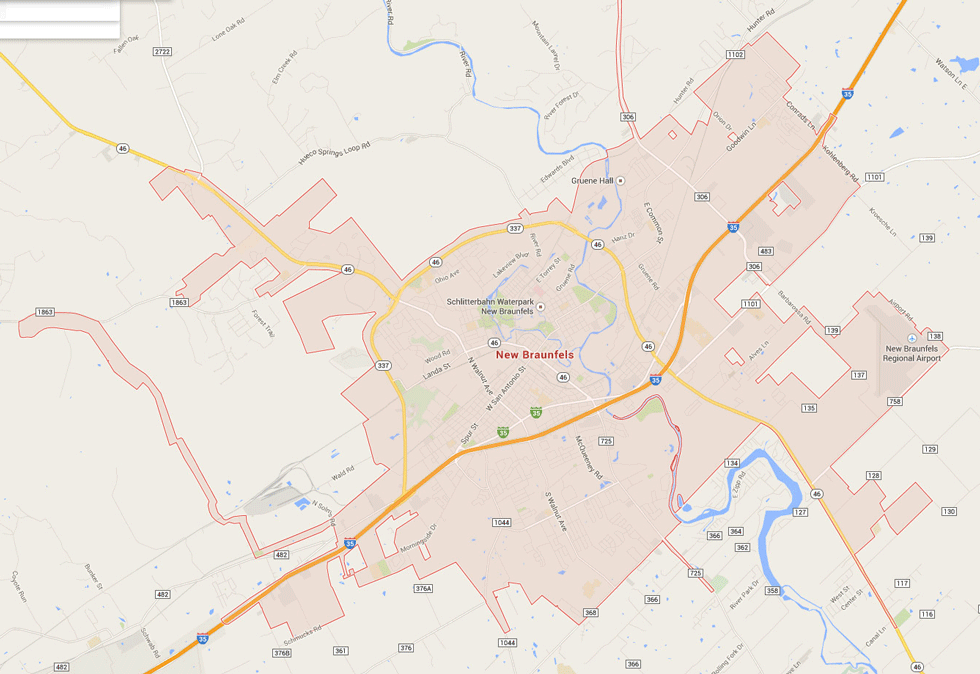 Navigate New Braunfels, Texas Map, map of New Braunfels, New Braunfels Texas regions map, New Braunfels satellite image, towns map, road map of New Braunfels.