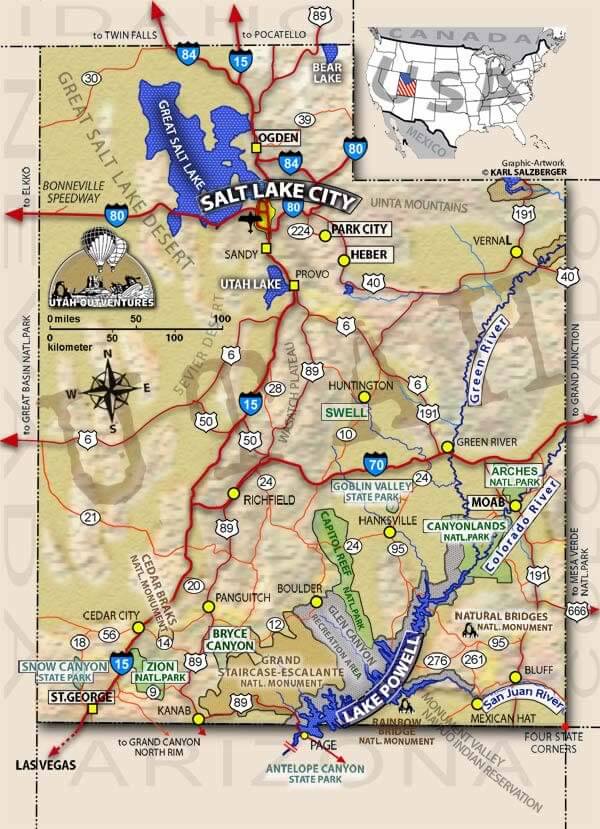 On our Utah map, you can find major cities such as Salt Lake City, Provo, and St. George, as well as popular attractions such as Zion National Park, Bryce Canyon National Park, Arches National Park, and Canyonlands National Park. You can also discover hidden gems and off-the-beaten-path destinations, making your Utah adventure truly unique.