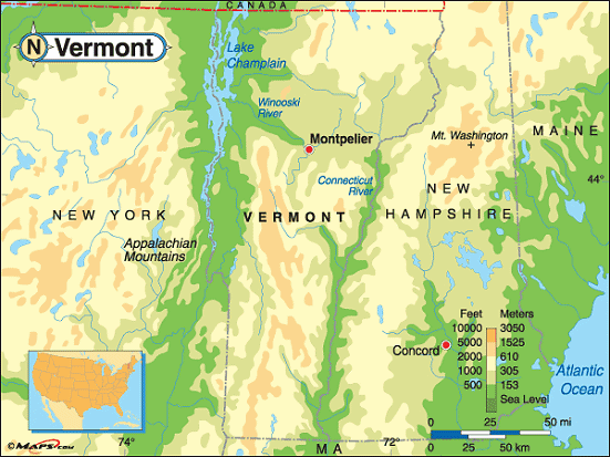 VERMONT PHYSICAL MAP