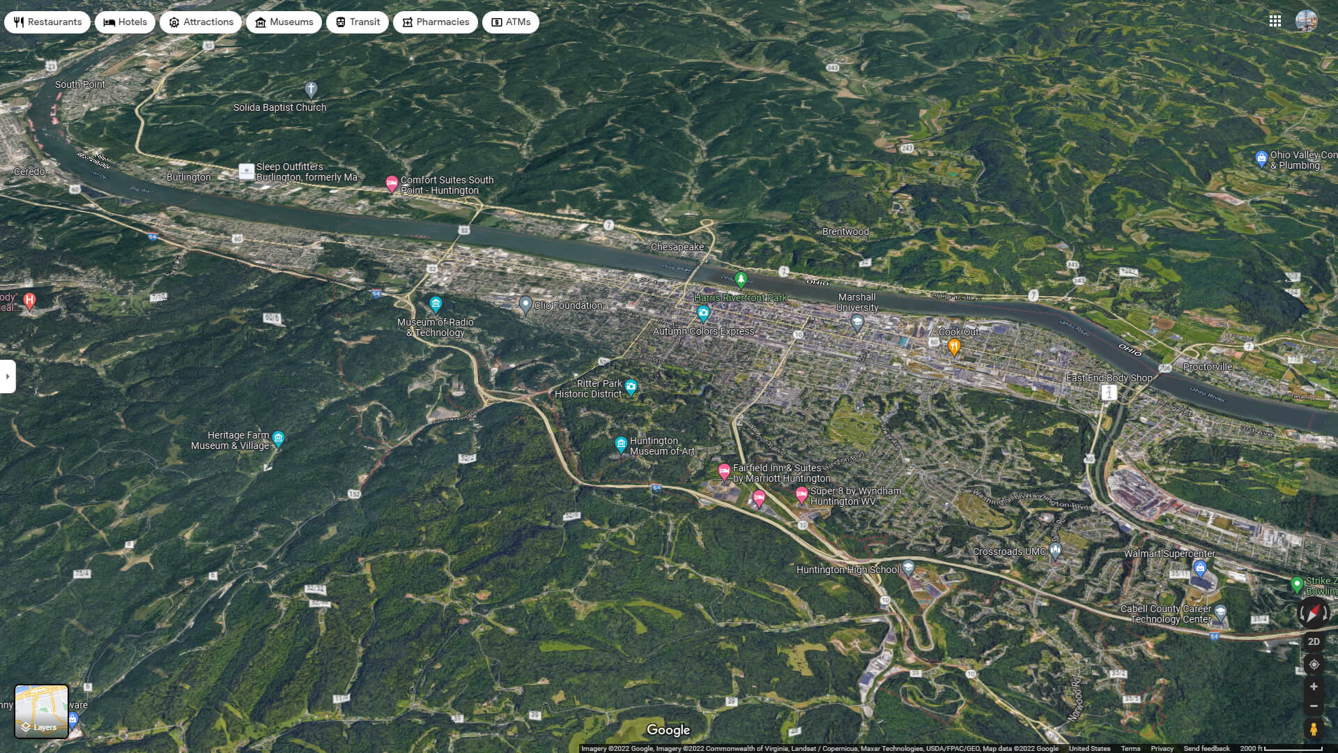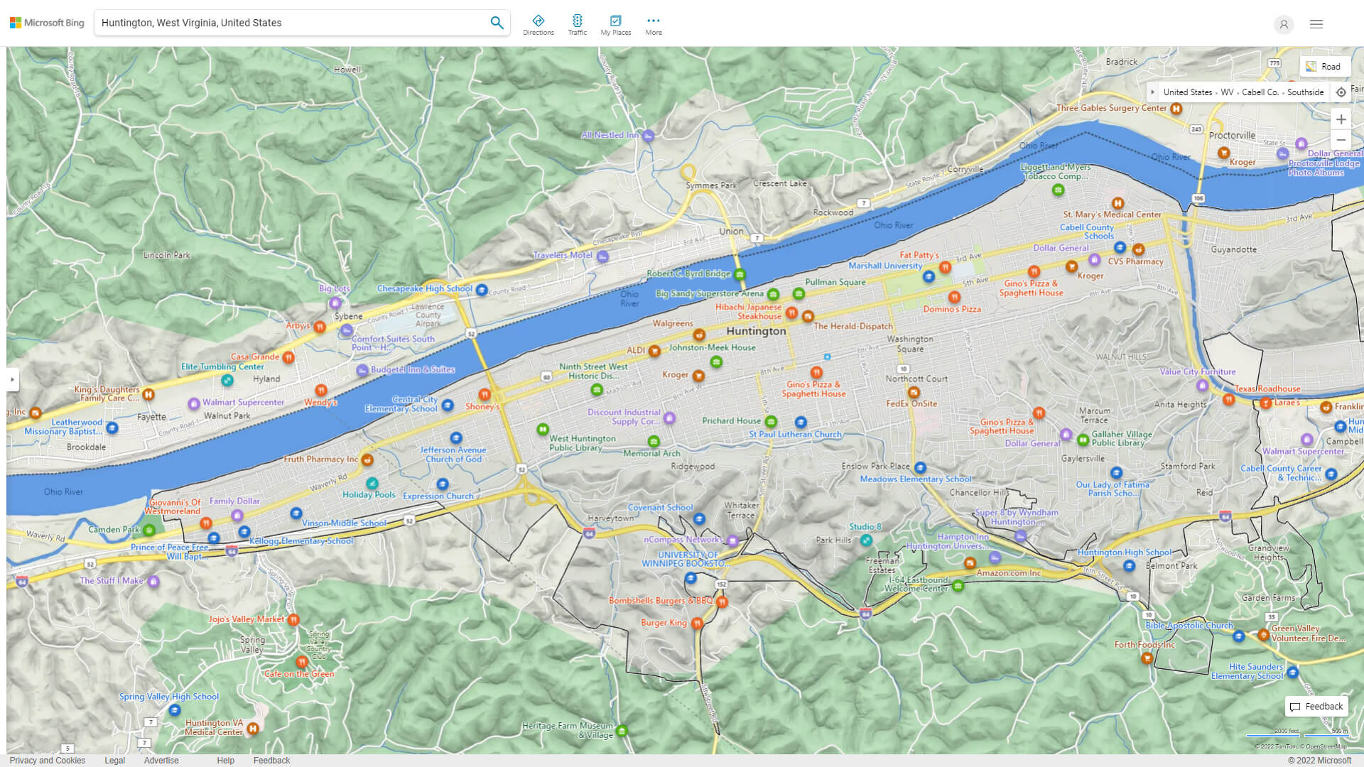 Navigate Huntington, West Virginia Map, map of Huntington, Huntington West Virginia regions map, Huntington satellite image, towns map, road map of Huntington.